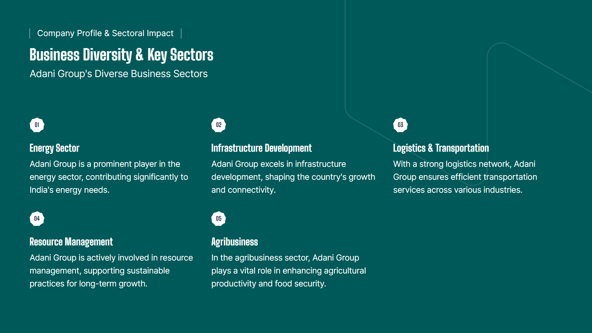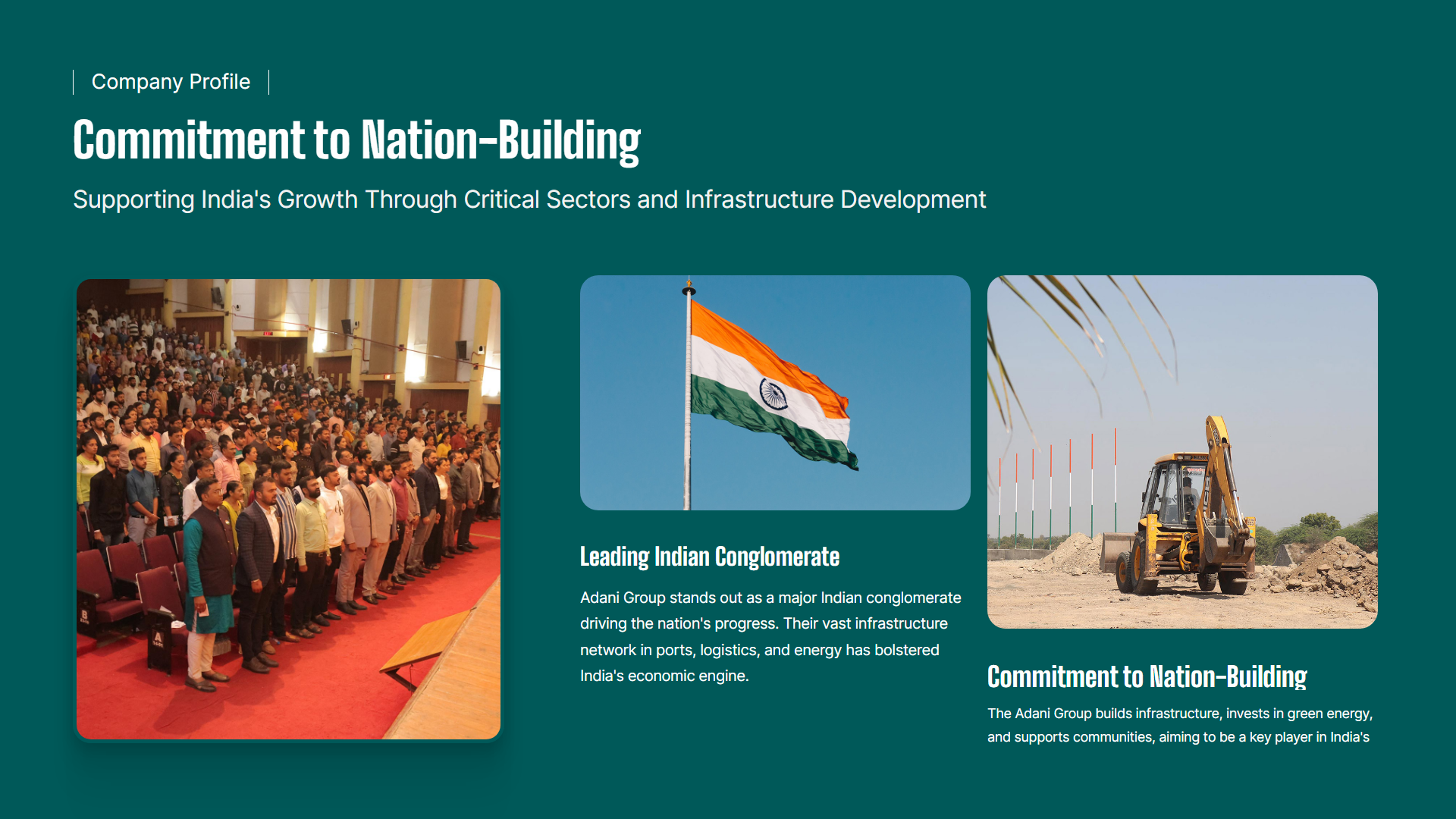 Diversified Indian conglomerate with a strong presence in infrastructure, energy, logistics, and digital sectors, contributing to nation-building projects.