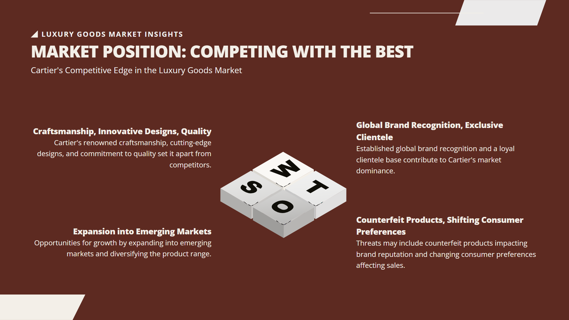 Cartier is a French luxury goods conglomerate that was founded in 1847 by Louis-François Cartier. The company is headquartered in Paris, France, and is one of the most recognized and respected luxury brands in the world. Cartier is known for its high-end jewelry, watches, and accessories, and has a long history of creating iconic and innovative designs that have become synonymous with luxury and sophistication. The company has a strong presence in over 125 countries and has a reputation for delivering exceptional quality and craftsmanship.