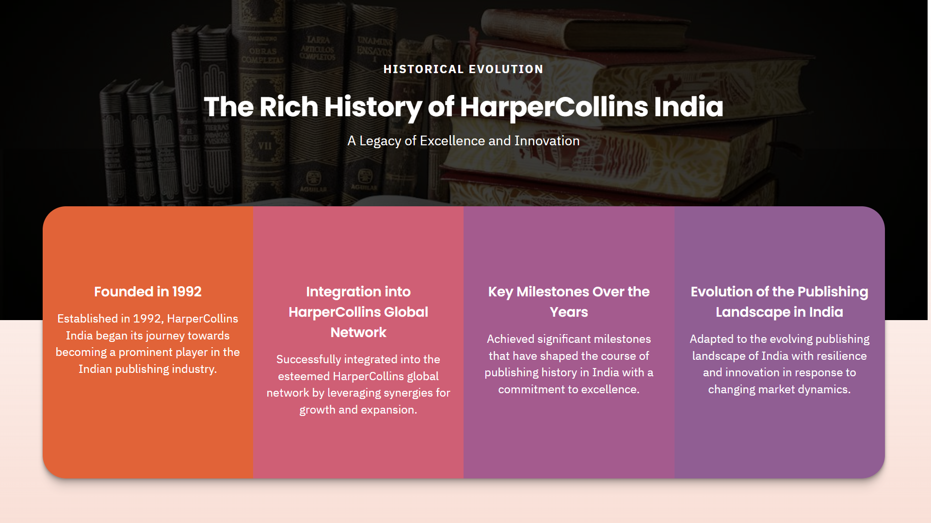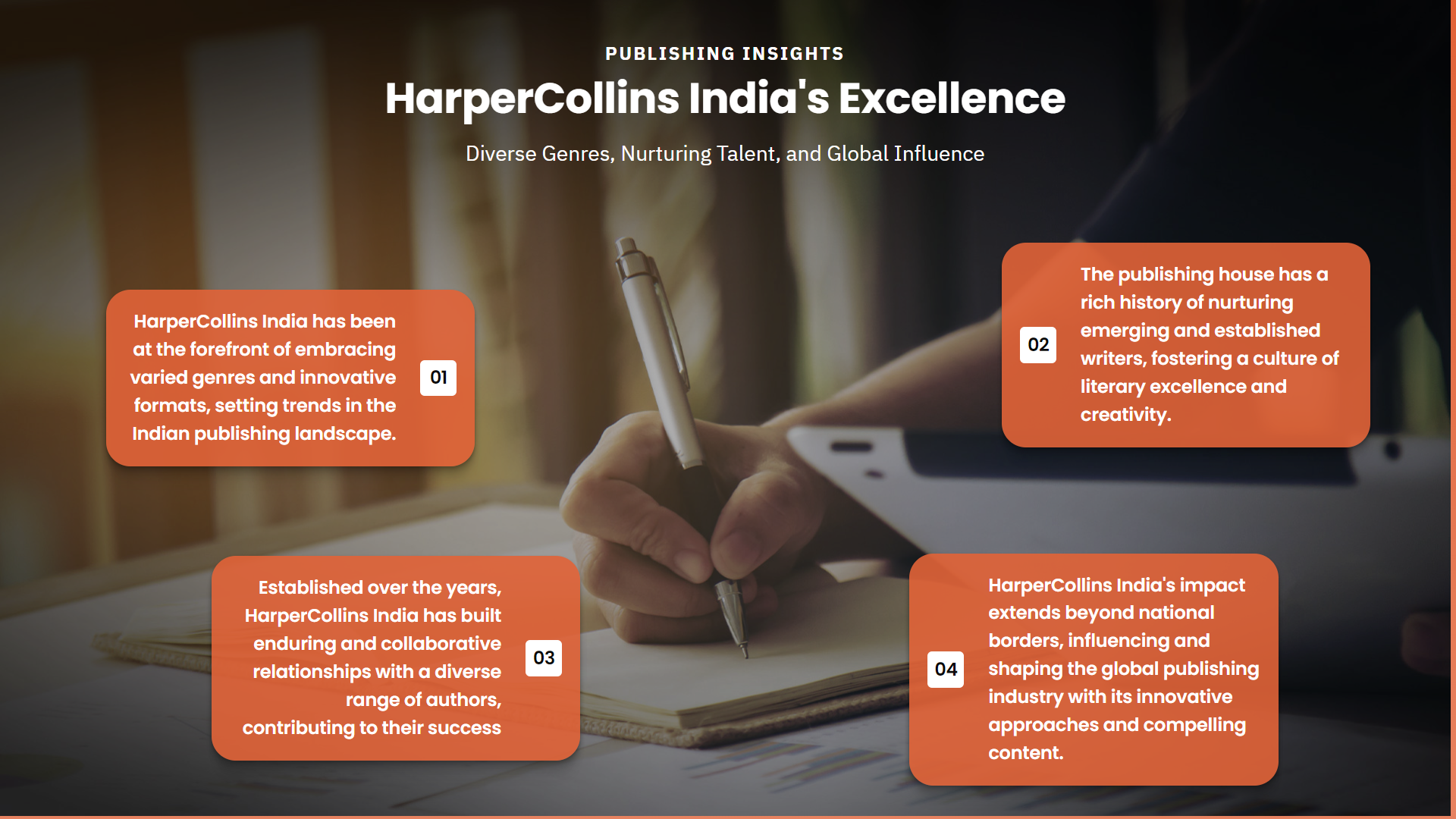 HarperCollins India is a leading publisher of books in India, and is a subsidiary of HarperCollins Publishers, one of the largest English-language publishers in the world. Founded in 2006, HarperCollins India is headquartered in New Delhi, and has a diverse publishing program that includes fiction, non-fiction, children's books, and academic titles. The company has a strong focus on publishing Indian authors and titles, and has published many bestselling books across a range of genres. HarperCollins India's publishing program is designed to showcase the best of Indian writing, and to bring Indian authors to a global audience.