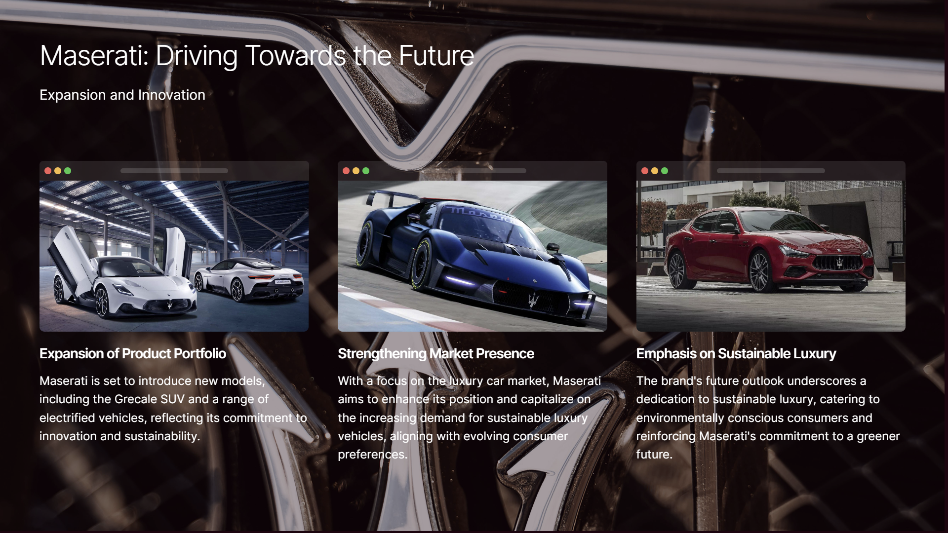 View the research gallery for Yatin Taneja's complete research and insights on Maserati.