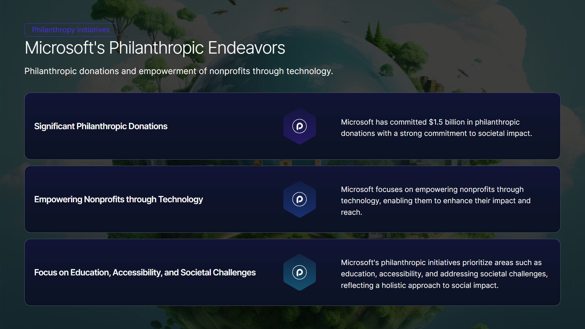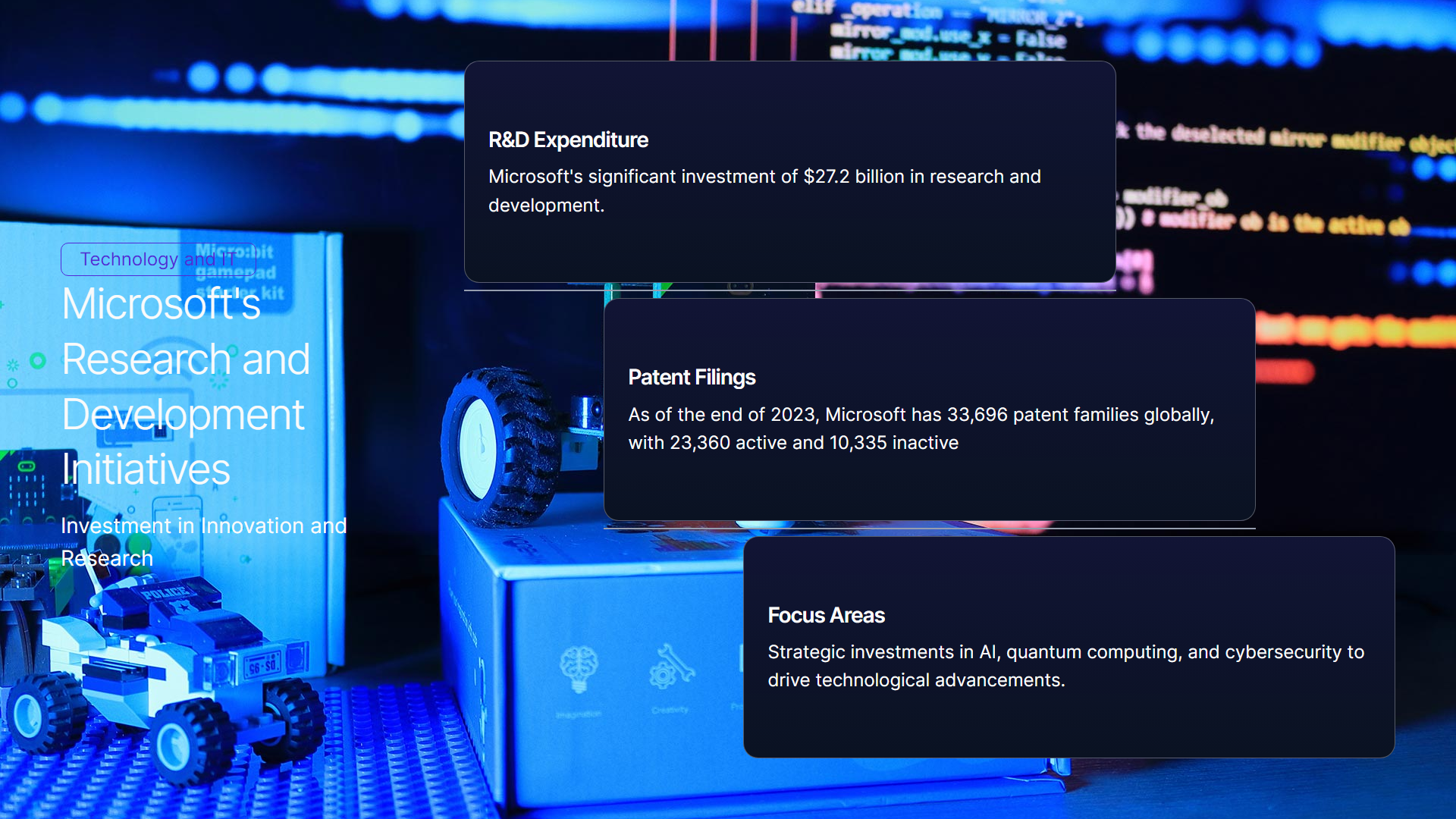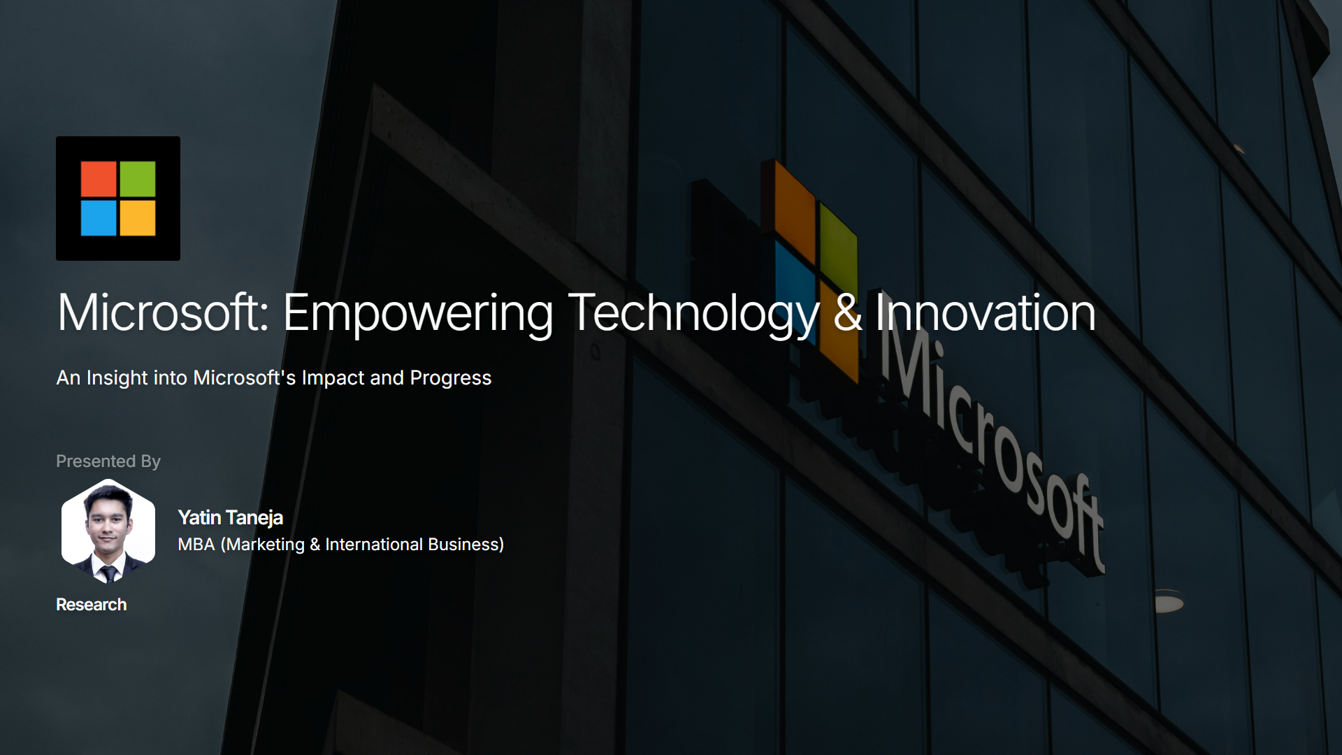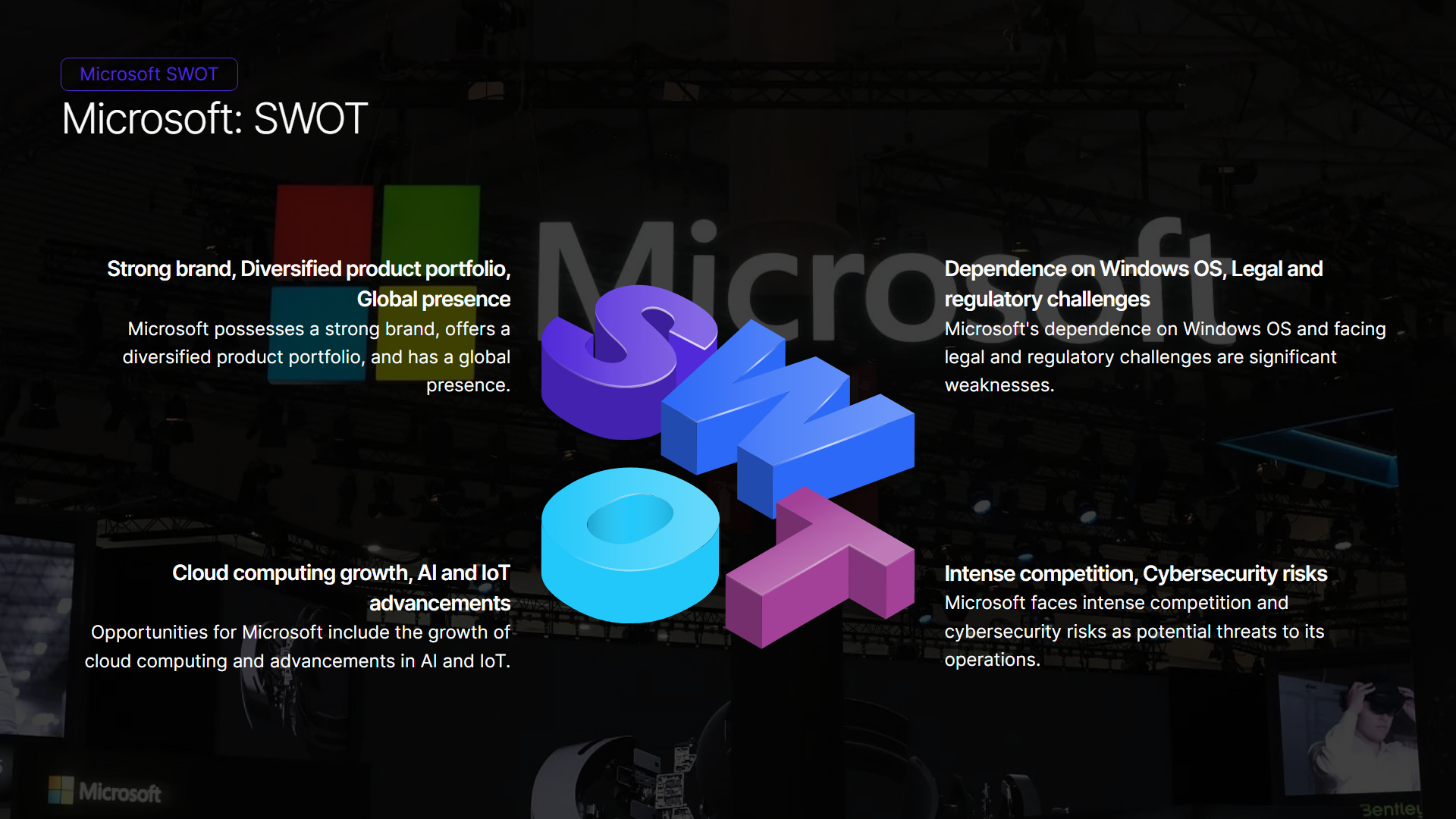 Tech corporation, developing Windows, Office, and cloud services, empowering businesses and individuals to achieve more.