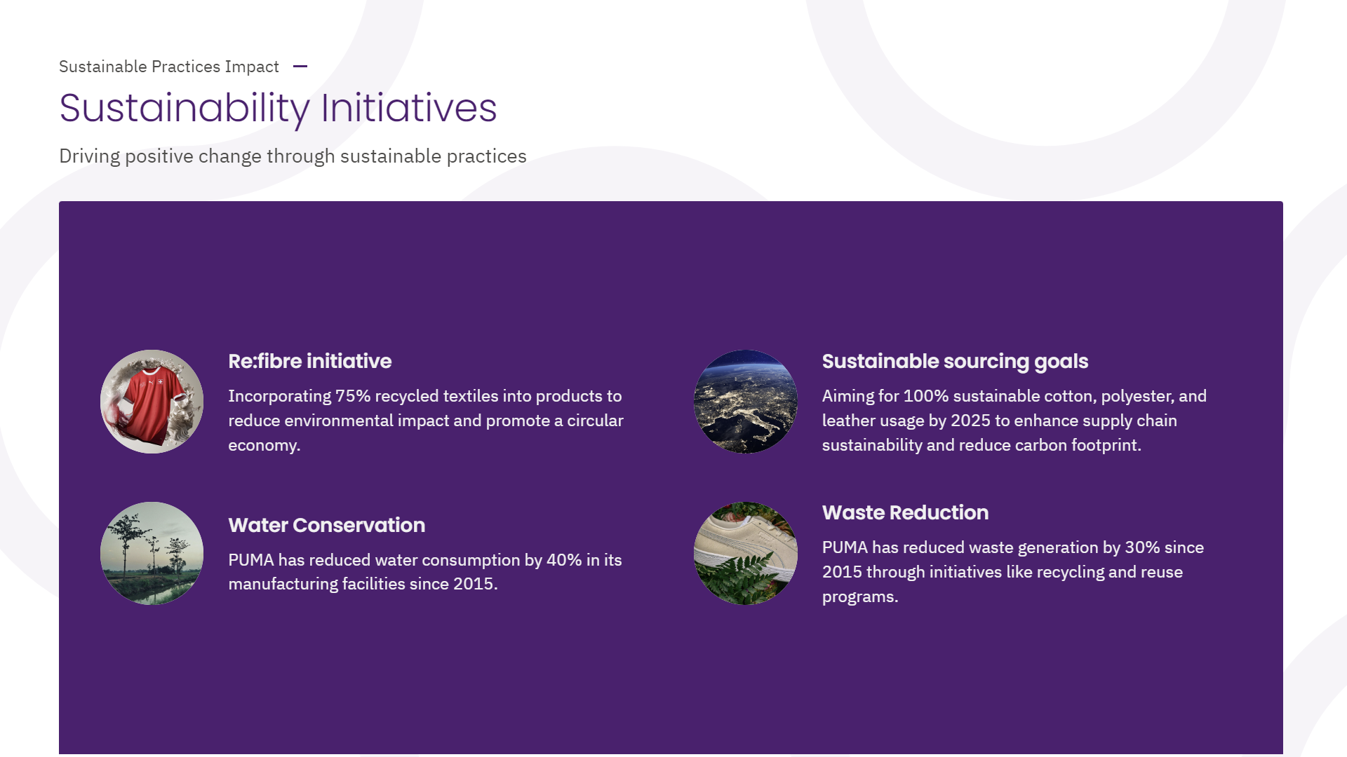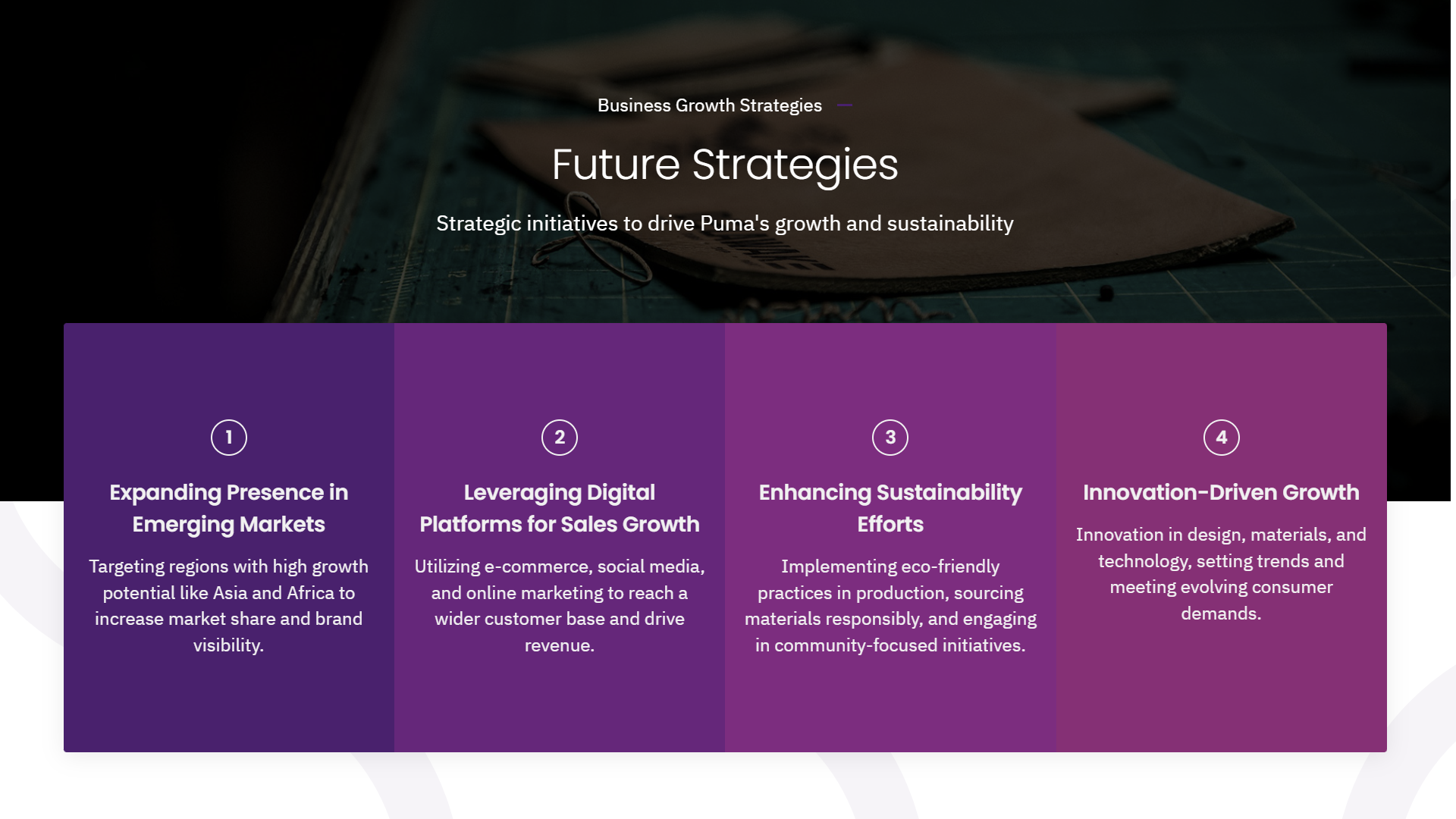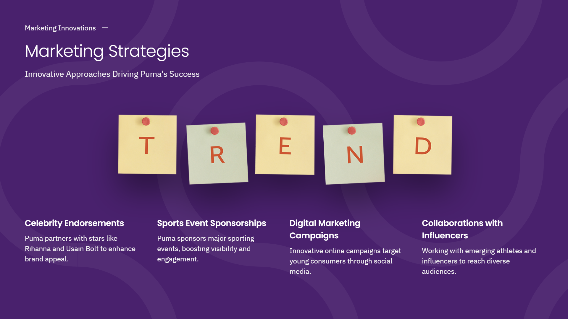 PUMA has a strong focus on innovation and sustainability, and has made significant investments in research and development to create high-performance and eco-friendly products. The company's Forever Faster platform is a key part of its brand identity, and is reflected in its products, marketing, and partnerships. PUMA has also been at the forefront of fashion collaborations, partnering with top designers and artists to create limited-edition collections that are highly sought after by fashion enthusiasts. With a strong brand identity and a commitment to innovation and sustainability, PUMA continues to be a leader in the sports and fashion industries.