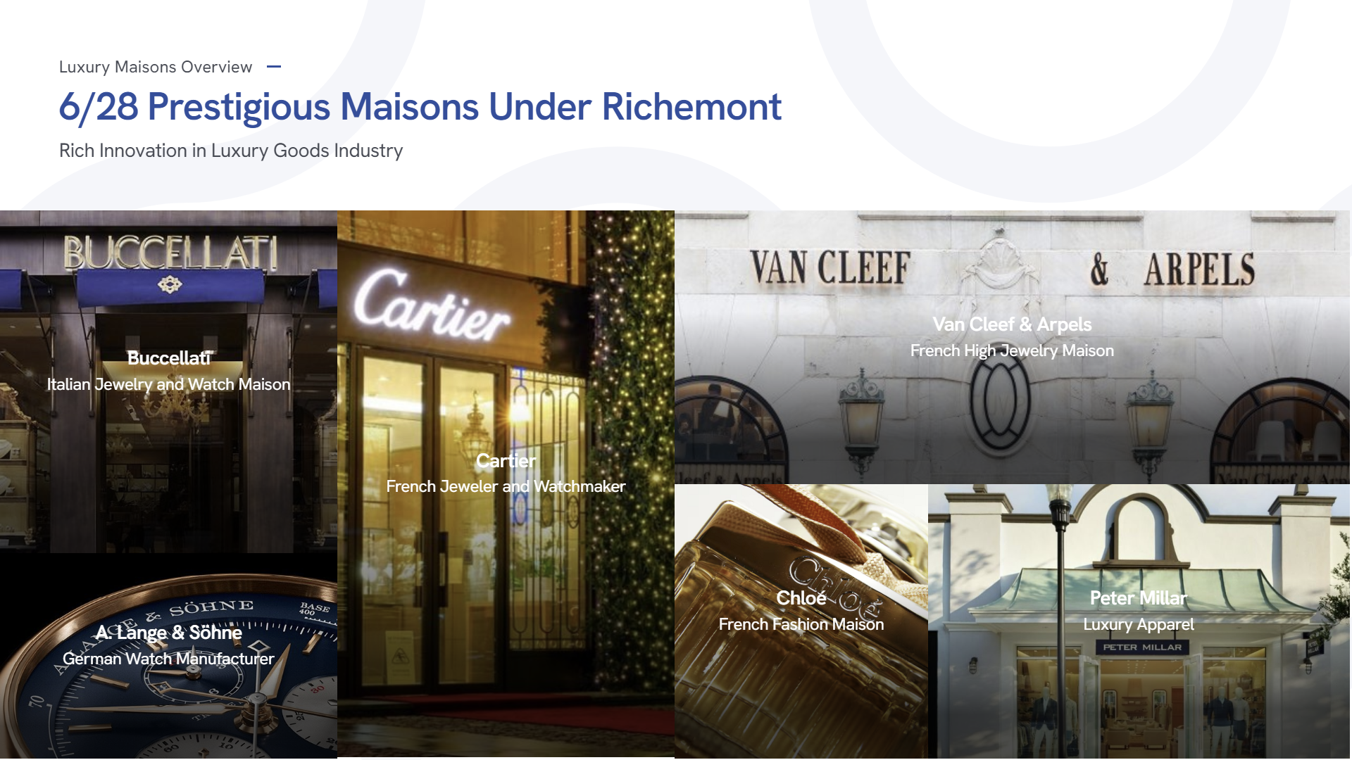 Swiss luxury goods holding company, owning prestigious brands like Cartier, Montblanc, and Van Cleef & Arpels.