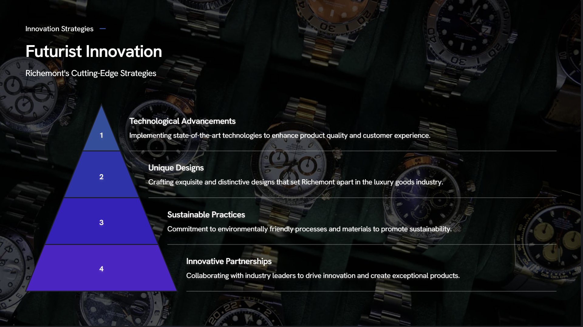 Richemont has a strong focus on innovation and customer experience, and has made significant investments in digital transformation and e-commerce to enhance its online presence and reach a wider audience. The company has also been at the forefront of sustainability and social responsibility, and has implemented various initiatives to reduce its environmental impact and promote responsible business practices. With a strong portfolio of luxury brands and a commitment to innovation and sustainability, Richemont continues to be a leader in the luxury goods industry.